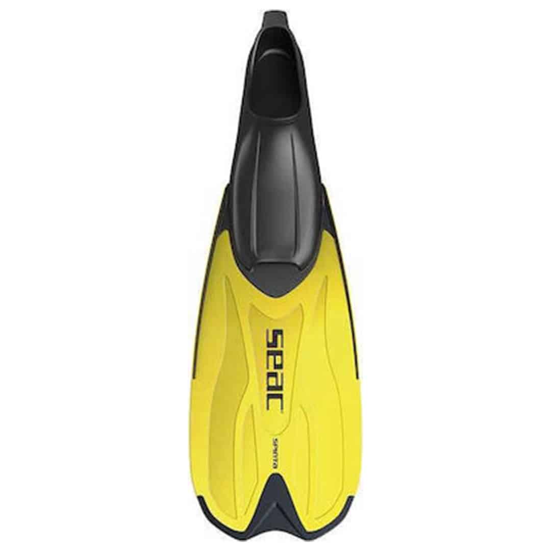 Βατραχοπέδιλα από την Seac, με μεσαίες σε μήκος λεπίδες που προσφέρουν ώθηση και ταχύτητα λόγω της επιφάνειάς τους κατά την κολύμβηση στη θάλασσα ή το snorkelling.